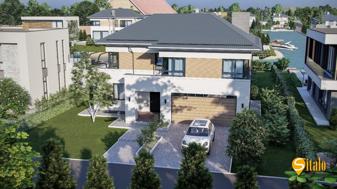 В коттеджном посёлке River Marina Village продаётся дом 300 кв.м. Участок 28 соток, свой выход на фарватер Днепра , берегоукрепление, свой собственный причал , на участке вековые деревья ( берёзы и дубы ) . К дому подведены все коммуникации , включая газ и электричество, своя скважина . В доме 3 спальни , кабинет , столовая, гостиная, три санузла , котельная , гараж ( есть разные варианты домов и площади ). River Marina Village это новый коттеджный городок бизнес класса в 3 км от Киева и 7 км от станции метро Славутич . Развитая инфраструктура : супермаркет, детские сады, магазины , стадион , ледовый каток и тд . В пешей доступности . Концепция строительства в едином стиле - Минимализм и high-tech style . Территория охраняемая, Обслуживающая Управляющая компания , ресторан , пляж,лаунж зона , беговая дорожка , парк , ну и конечно же своя небольшая марина для швартовки яхт ваших гостей . Все это предлагает вам новый коттеджный городок River Marina Village . Код 9137