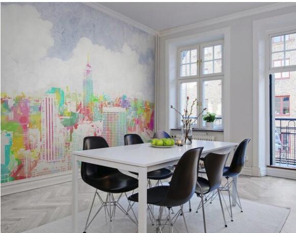 Не забывайте про колористику! Вполне возможно использовать технику колор-блок и выбрать обои контрастирующего цвета, если вы оформляете помещение в стиле хай-тек, контемпорари или бохо. Для более спокойных и классических интерьеров выбирайте фотообои, гармонирующие с основными цветами мебели и стен.