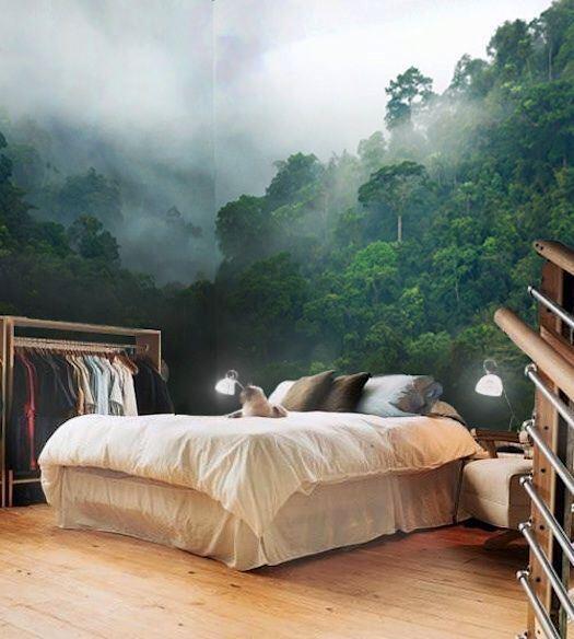 В зонах, предназначенных для отдыха, лучше не использовать фотообои с изображением небоскребов или оживленных городских улиц. Такие изображения могут украсить гостиную, прихожую или рабочий кабинет. Для спальни выбирайте более умиротворяющие изображения природы.