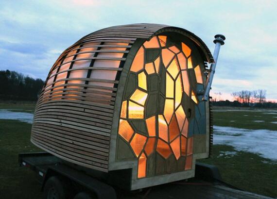 «Стручкообразный» дом на 21 квадратный метр включает в себя спальный чердак, систему сбора дождевой воды, а также автономную 300-ваттную солнечную электрическую энергосистему. Прозванный OTIS (Оптимальное Путешествие Независимое Пространство) — это самодостаточный мобильный дом, который состоит из использованных вторичных материалов.