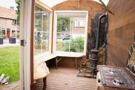 Здесь нет ничего лишнего. Сам каркас сделан из фанеры найденной на соседней свалке, немного украшен мозаикой из камня и помещен на платформу от грузовика. Как утверждают сами создатели, этот домик они собрали всего за 2 недели, хотя сама подготовка шла значительно дольше.