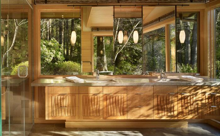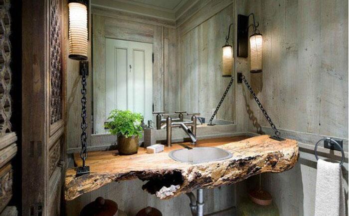 Деревянная раковина в ванной