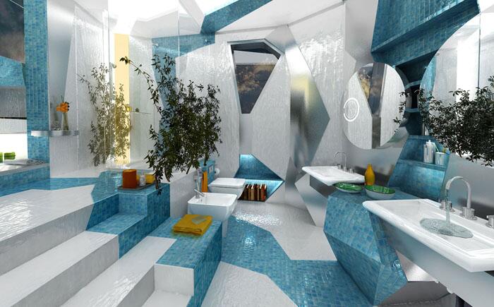 Ванна в бело-голубой цветовой гамме
