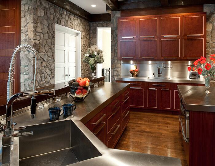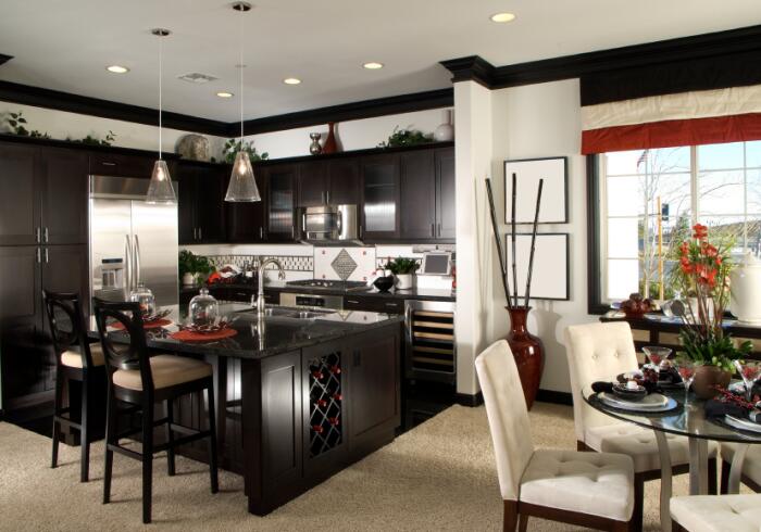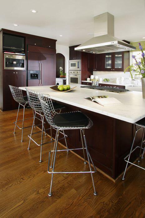 8. Черные стулья в коричневой кухне