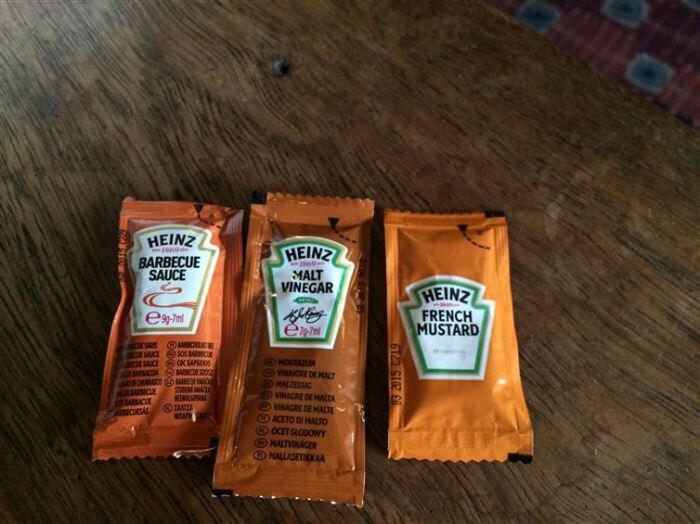 Производители могли придумать более оригинальный способ различать разные пакетики с соусами.