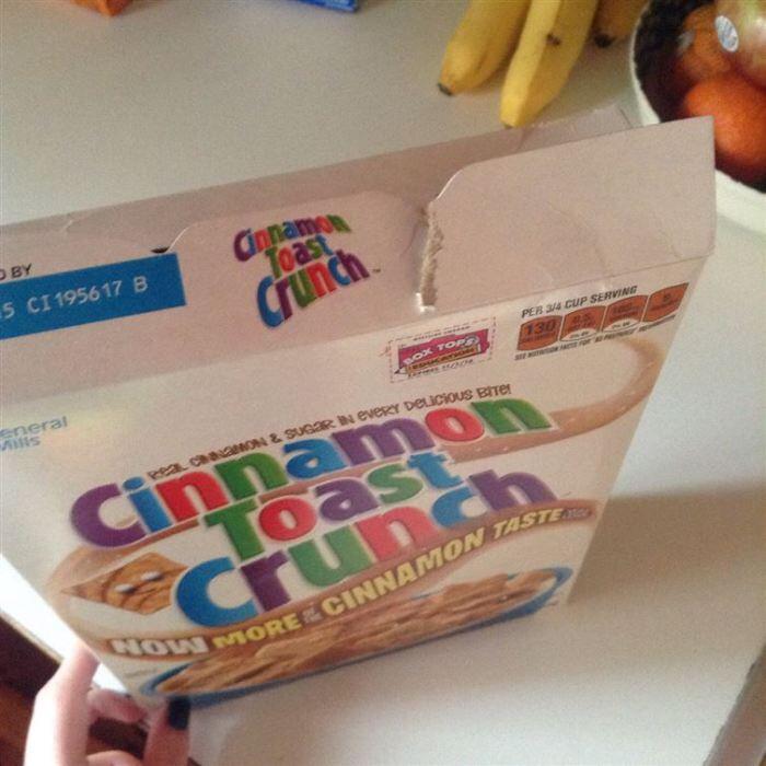 Неприятное ощущение, когда специальный замочек для коробки с хлопьями рвется.