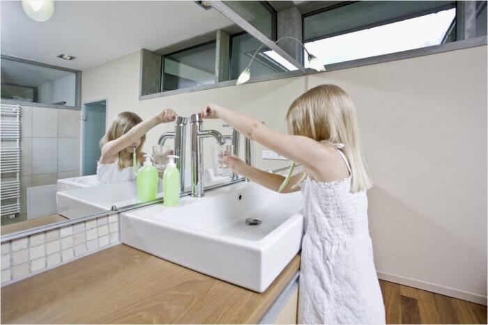 10 способов оптимально использовать пространство ванной комнаты. Грамотно спланированное освещение не только позволяет добиться нужного оптического эффекта, но и обеспечивает нам дополнительный комфорт. В идеале можно установить несколько светильников, которые включаются по отдельности. Самые яркие располагаются не на потолке, а возле умывальника (обычно сверху, справа и слева от зеркала), но так, чтобы свет не бил в глаза. Можно добавить интерьеру индивидуальности и выбрать совсем необычное решение – специальный прозрачный кромочный материал Lite Edge для торца столешницы, куда монтируется светодиодная лента.