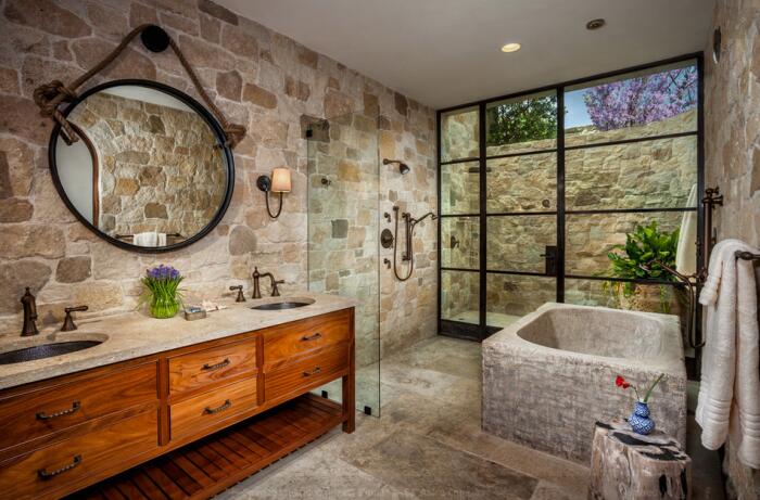 - 1. Деревенские нотки в дизайне ванной комнаты