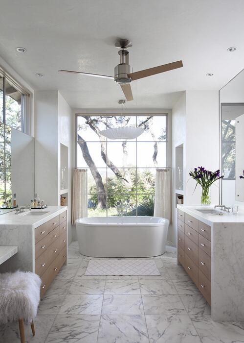 Потрясающая наполненная светом ванная комната, выполненная в белом цвете.