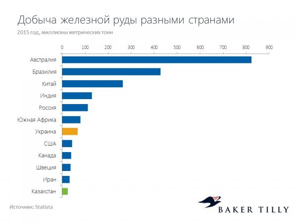 А ще Україна і Казахстан є лідерами з видобутку та експорту залізної руди — тут також постійна конкуренція за китайський ринок, який споживає дві третини світового обсягу залізної руди.