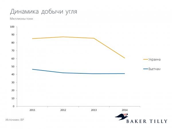 Хоча за вказаними показниками країна знаходиться трохи нижче України, але за останні два роки В'єтнам випередив нас у видобутку вугілля. У 2014 році Кабмін навіть розглядав можливість імпорту вугілля звідти.