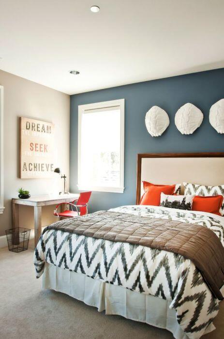 Покрасьте стену в контрастный цвет и добавьте необычное украшение для того, чтобы сделать акцент.