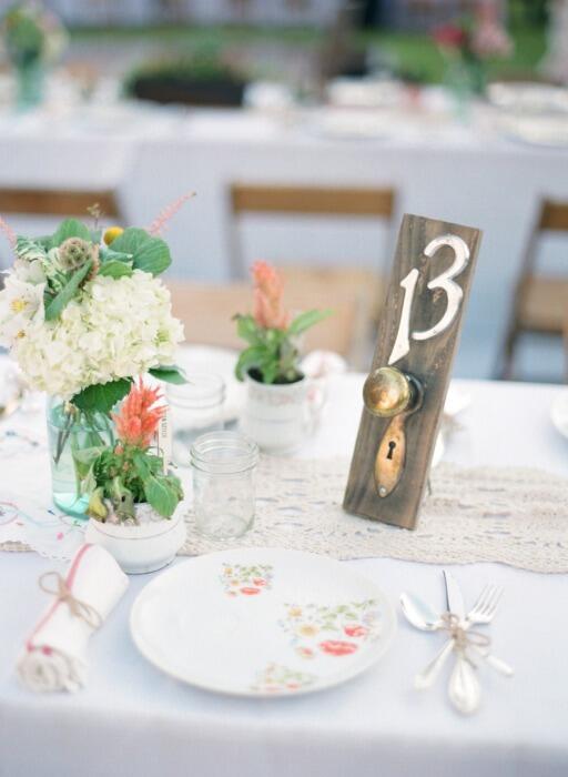 Очаровательные дверные ручки с номерами столиков на свадьбе.