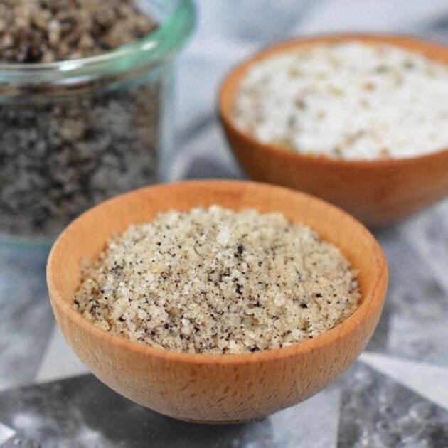 Обыкновенная соль и специи в соотношении 1 чайная ложка специй к 1/4 чашки соли. Специи: сухие травы, перец чили, высушенные корочки цитрусовых, чай, сухой чеснок, лук или томаты. Все ингредиенты должны быть сухими и измельчёнными или нарезанными очень мелкими кусочками!