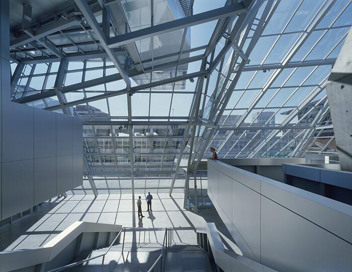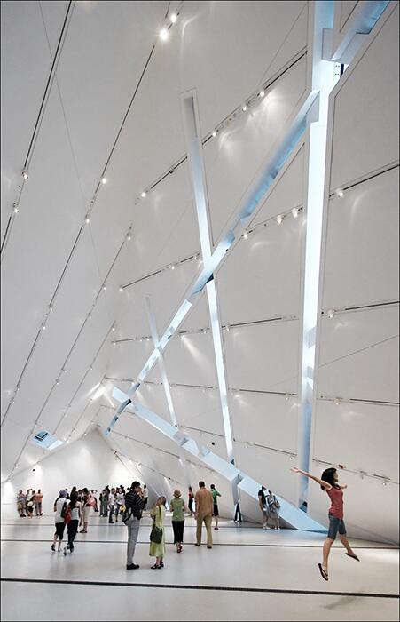 Интерьер музея Современный музей искусств, построенный по проекту Coop Himmelb(l)au в провинциальном городке штата Огайо, стал новым центром притяжения для местных жителей. Одним из главных принципов при проектировании этого здания был принцип максимальной освещенности внутренних помещений. Стоит отметить, что эта на первый взгляд кажущаяся агрессивной постройка из стекла и металла смотрится гармоничной на фоне городской застройки благодаря тщательно проработанному масштабу.