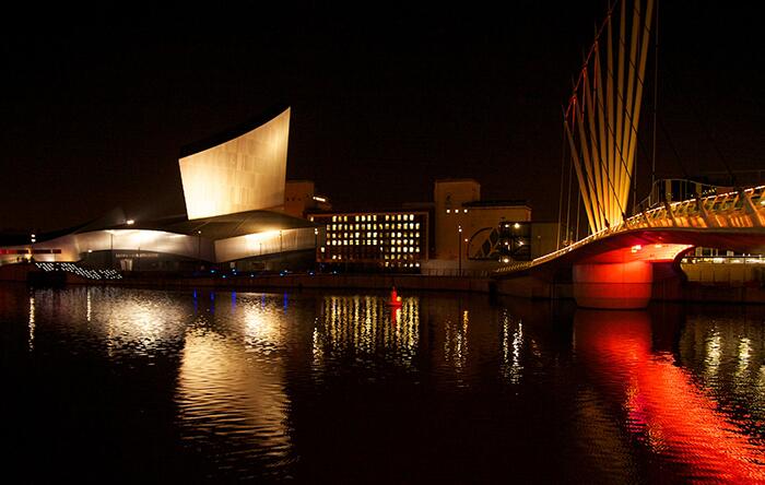 Здание музея ночью Манчестерский филиал лондонской сети музеев, посвященных военной тематике, был построен в 2001 году на той территории Англии, которая более всего пострадала от ужасов войны. Автором проекта нового музея выступил Даниэль Либескинд. Главным мотивом к созданию столь важного культурного объекта было желание показать нашу планету, уничтоженную в результате многочисленных войн, но затем собранную по осколкам воедино.