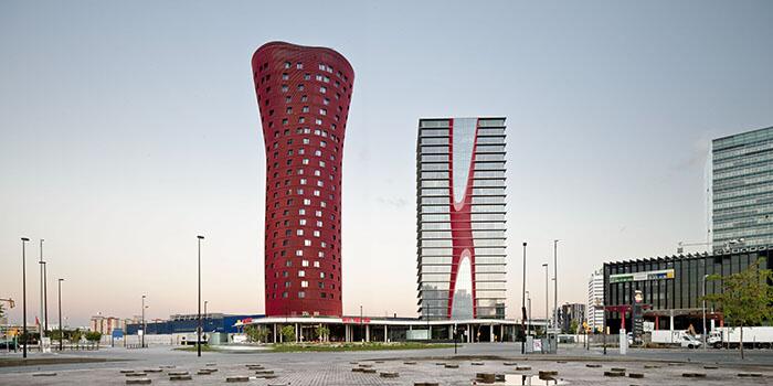 Фрагмент фасада Эффектная башня отеля Porta Fira, расположенная в столице Каталонии, была спроектирована известнейшим японским архитектором Тойо Ито и построена в 2009 году. Туристов и местных жителей поражает органическая форма башни и невероятная фактура ее фасадов, являющаяся следствием использования алюминиевых труб красного цвета. Именно эти металлические элементы придают стенам отеля эффект колебания и служат в качестве жалюзи.