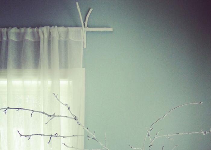 Оригинальный карниз для штор, сделанный из деревянной ветки.