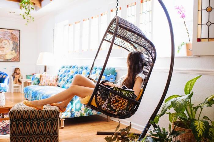 4. Подвешенное на цепи кресло-качалка в углу комнаты