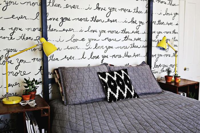 Надписи от руки создают уникальный дизайн комнаты.