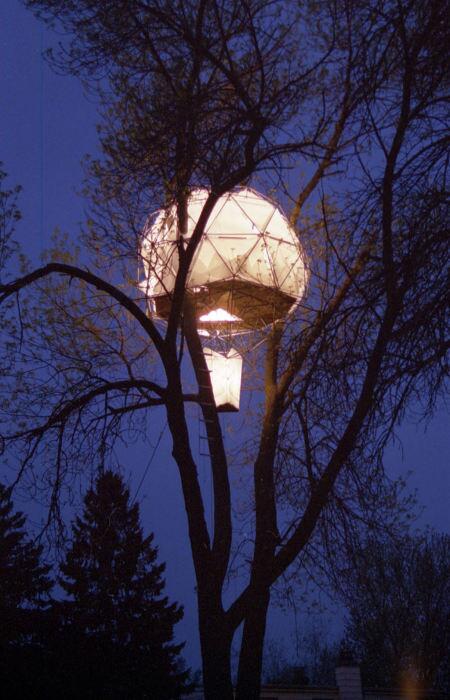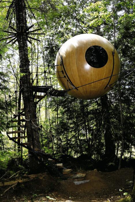 Дом от американской строительной компании «O2 Treehouse», напоминающий воздушный шар, готовый взлететь.