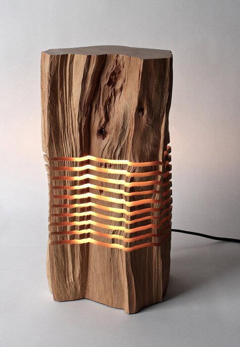 Восхитительный светильник в срубе дерева.