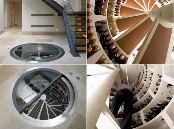 Потрясающий винный погреб, закрученный по спирали.