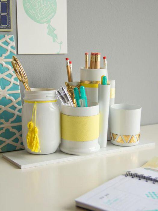 Яркие подставки для ручек и карандашей для украшения письменного стола.