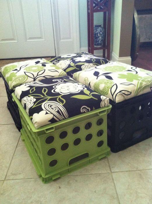 8. Удобные сидения из пластиковых коробок и подушек
