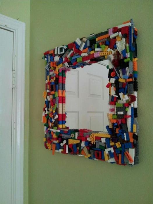Зеркало в раме из Лего будет очень гармонично смотреться в детской комнате.