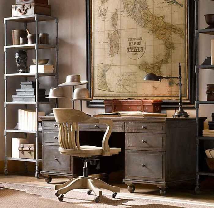 Старая настенная карта в раме добавит особого ощущения в комнату.