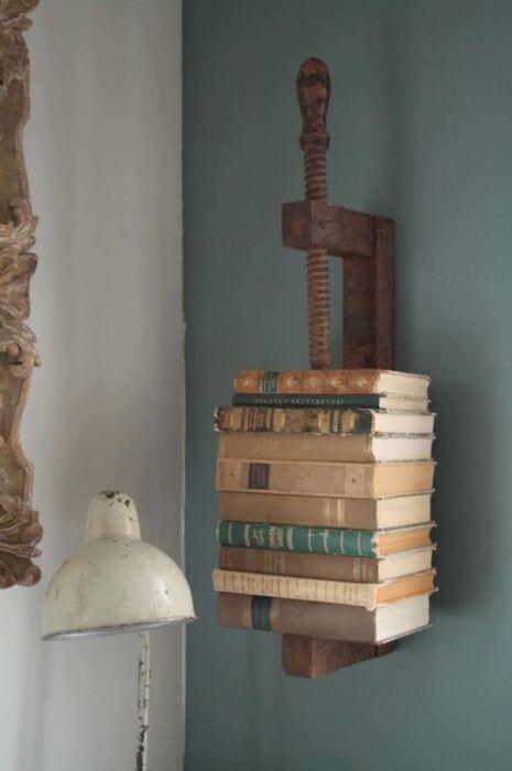 Старые книги будут прекрасно смотреться на полке из водосточной трубы.