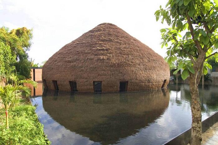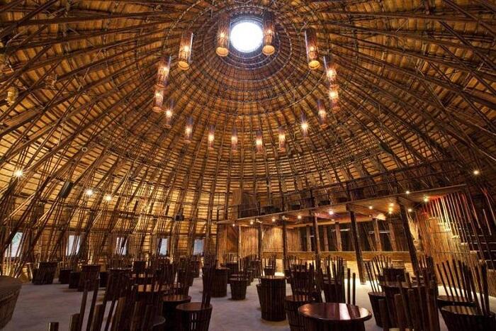 Этот бар находится посреди озера. Его уникальность в том, что при сооружении здания не было использовано ни единого гвоздя! Части бамбуковой конструкции были соединены древним способом, заимствованным у японцев.