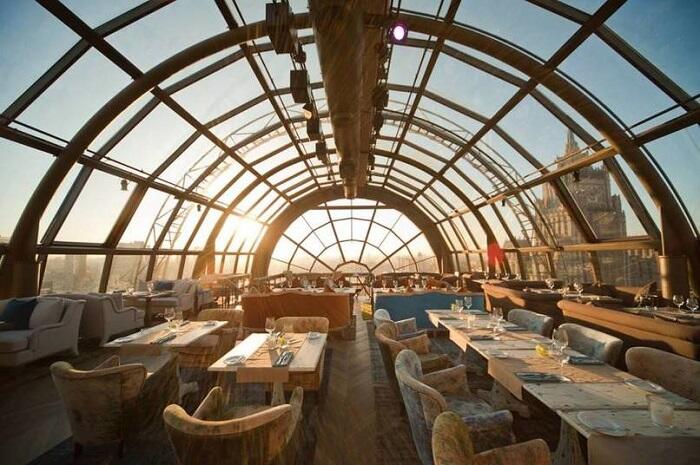 Из окон этого заведения открывается прекрасный вид. Здесь можно полюбоваться Москвой с высоты птичьего полета.