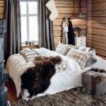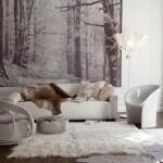 Мягкий, пушистый ковер, в котором утопают ноги – самое уютной дополнение в декор зимнего интерьера гостиной. Если вы лояльны к натуральному меху, то большая лохматая шкура у камина – это именно то, что нужно.