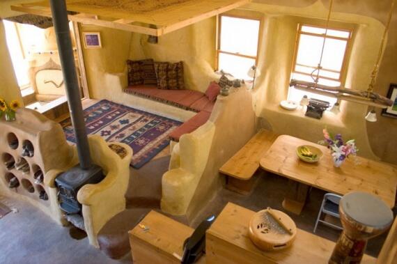 Это интерьер дома из глины в Техаси, который построил Гарри Цукер своими руками. Гарри программист и опыта в строительстве он не имел, дом строил по выходных и в свободное время. На глиняный дом 275 кв.м. Гарри потратил на расходные материалы всего 2520$: