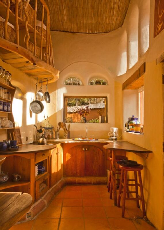 Кухня в круглом доме из глины![]()