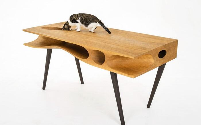 Стол «Куда подевался мой обед?» Многим знакома ситуация, когда питомец ворует еду с обеденного стола. А подобный стол и выглядит необычно, и заинтересует кота, ведь так ему будет интереснее воровать обед, просовывая лапы в неожиданных для местах.