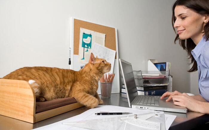 Специальный ящик для кота на компьютерном столе