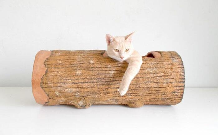 Кто, кто в теремочке живет? Бросить такое полено в костер, было бы не правильно. Ведь в нем прекрасно разместилось мягкое и уютное спальное место для кота. Кроме того, что это природный материал, такое полено прекрасно подойдет интерьеру в деревенском стиле.