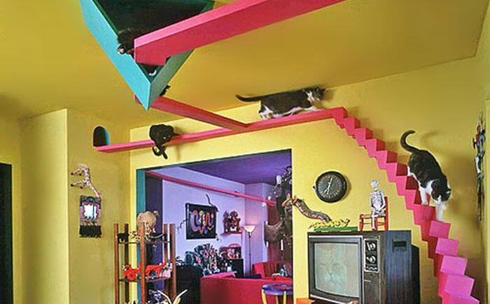 Коты-эстеты! Только коты с художественным вкусом, знающие толк в искусстве, достойны жить в доме, где для них оборудованы стильные разноцветные дорожки и абстрактные конструкции, тоннели, которые радуют не только котов, но и людей.