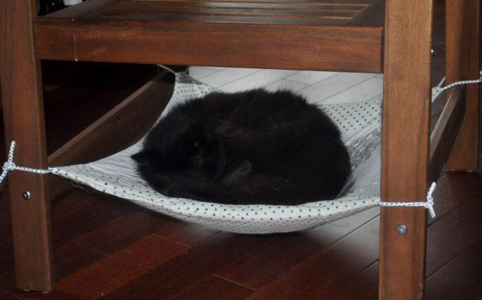 Гамак для дневного сна Котам не нравится, когда их тревожат и убирают с полюбившегося кресла во время дневного сна. Как альтернатива, можно установить под креслом гамак, и вы сможете разделить кресло со своим питомцем по-дружески.