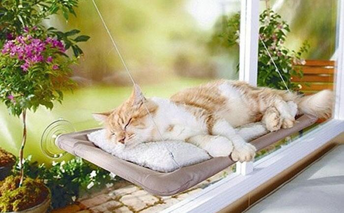 Принимать солнечные ванны стильно Часто можно застать кота, сидящего на подоконнике и наслаждающегося теплыми лучами солнца. Этот лежак на присосках станет одним из самых любимых мест, наряду с лежаком у батареи.