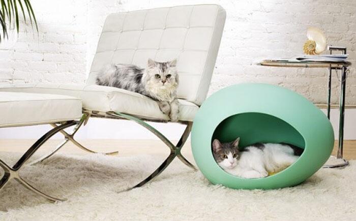 Стильный домик для кота Каждому коту по домику в форме яйца, где он сможет и спать, и прятаться, чтобы наблюдать за тем, чем занимается человек. Такая форма и безопасна, и выглядит природно. Кроме этого, он прекрасно впишется в современный интерьер.