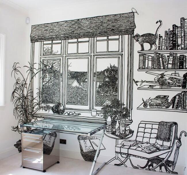 Рисунки маркером вместо обоев и недостающих предметов мебели. Гениально!