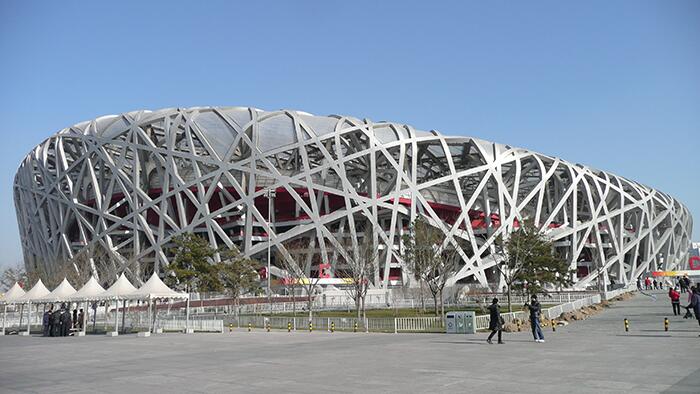 Главный олимпийский объект Пекина был построен в преддверии Игр в 2008 году. Чаша стадиона имеет очень интересный и необычный внешний вид, который стал возможен благодаря конструкции из высококачественной стали, покрытой полимерами. Впервые попавший на стадион болельщик будет удивлен продуманностью и цельностью главного символа нового Пекина - даже светильники вдоль дорожек, ведущих к входам на стадион, выглядят, как миниатюрные птичьи гнезда.