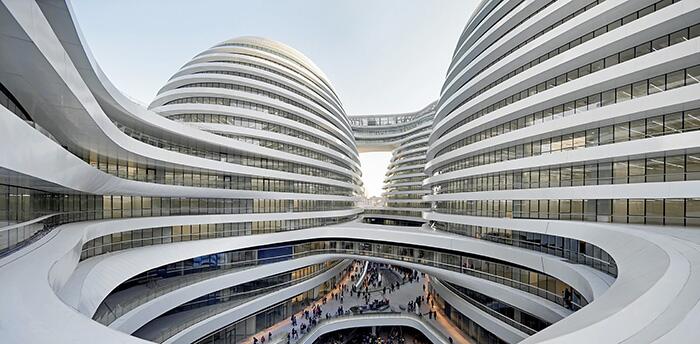 Многофункциональный комплекс Galaxy Soho, выполненный по проекту неповторимой Захи Хадид в 2010 году, стал настоящим украшением Пекина. Комплекс состоит из пяти куполообразных сооружений без прямых углов высотой до 67 м, плавно соединенных между собой на разных уровнях системой крытых и открытых переходов. Первые этажи занимают рестораны и магазины, а в верхних расположены офисы крупных компаний. Galaxy Soho стал первой работой Хадид в Китае.