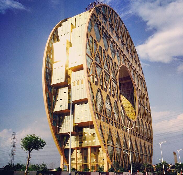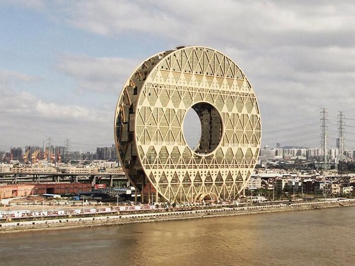 33-этажное здание высотой 138 м было построено в 2013 году в Гуанчжоу по проекту итальянца Джузеппе Ди Паскуале. В центре "Круга" расположено круглое отверстие диаметром около 50 м. При отражении здания в реке получается изображение, похожее на цифру 8, которая считается у китайцев счастливой. Гуанчжоуский комплекс считается самым большим круглым зданием в мире.