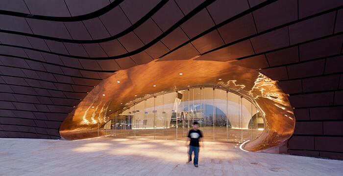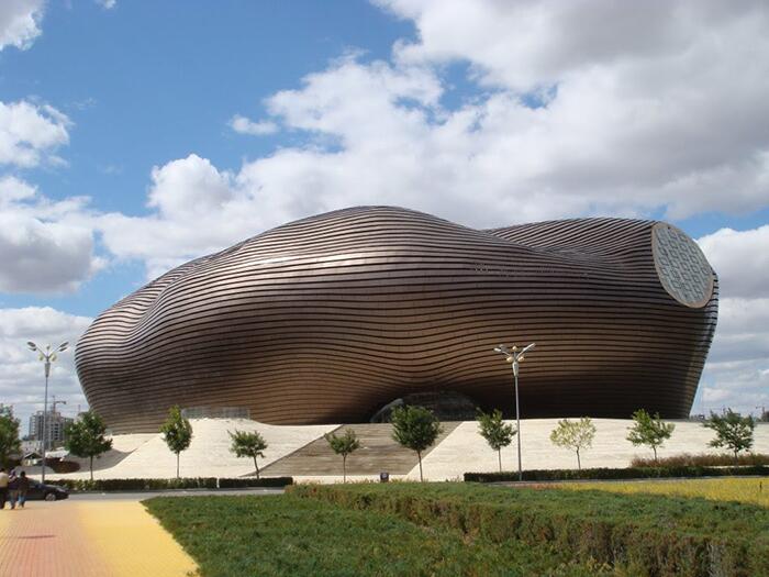 Недавно в Китае по проекту известного китайского бюро MAD Architects было завершено строительство нового уникального сооружения - музея в Ордосе. Главной особенностью находящегося на холме музея можно назвать его волнистую структуру из металлических пластин, которая помимо эстетической составляющей, защищает здание от перемен в погоде. Оригинальный объект ежедневно притягивает сотни туристов, желающих ознакомиться с этим шедевром современного зодчества.