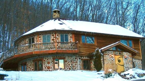 Вот интересный круглый 2-х этажный дом из штата Мичиган. Округлые линии в таком доме даются очень легко.